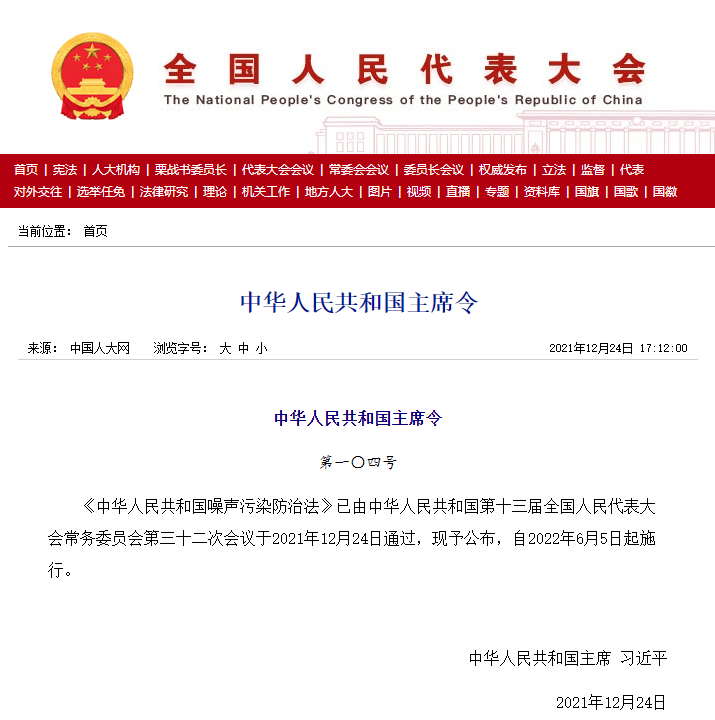2021年12月24日,全國(guó)人大常委會(huì)會(huì)議表決通過(guò)了《中華人民共和國(guó)噪聲污染防治法》,將于2022年6月5日起施行。現(xiàn)行《中華人民共和國(guó)環(huán)境噪聲污染防治法》于1996年制定、1997年3月頒布實(shí)施。時(shí)隔20多年后,新法進(jìn)行了較大范圍的修改。與現(xiàn)行噪聲法相比,新噪聲法主要有以下幾方面的變化: