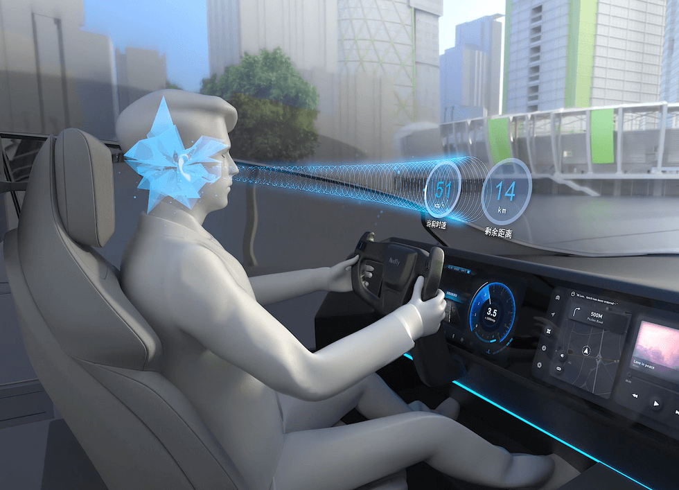集成了聚音屏的電子產品,直接使用屏幕作為發聲單元。聚音屏采用厚度僅約0.1毫米的全透明復合材料,使用參量陣算法控制單元、專有控制芯片,驅動屏幕上層材料進行微米級振動,發出高指向性、低失真的聲音,實現發聲方向和角度的動態控制。用戶無需戴耳機,即可在公共空間得到“獨立專屬聲場”。
