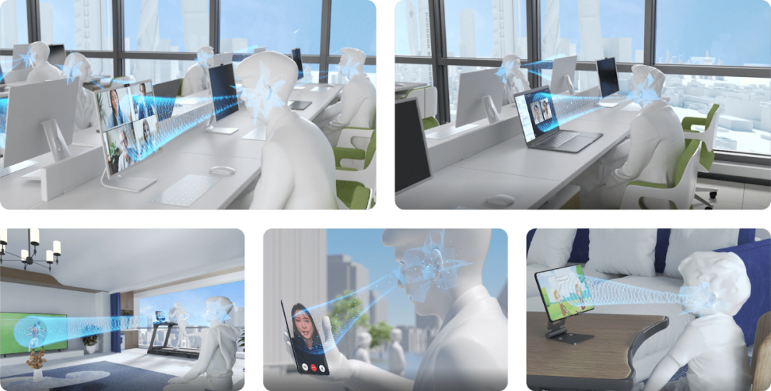 如今,折疊輕薄、可變形的柔韌顯示屏已成為顯示面板市場的一大流行趨勢,但目前仍面臨的挑戰是如何在可折疊、輕薄的顯示屏上放置音響?如何讓整個顯示屏成為音響?集成Focusound Screen™利用屏幕本身作為發聲單元,營造超越整個屏幕的全域音效,實現“音畫合一”,提供360°全環繞沉浸式音效體驗,可廣泛應用于筆記本電腦、電競顯示、會議系統等,私域聲場和空間音效的打造,賦予顯示產品基于終端場景的創新價值,給用戶帶來視聽一體的極致體驗,從場景痛點出發,讓視聽體驗更個性化、智能化、隱私化。