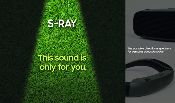 在剛剛結(jié)束的CES 2018展會上,Samsung C-Lab創(chuàng)新實驗室?guī)砹艘豢顢y帶型定向喇叭S-Ray(Sound-Ray),“定向”就其主要特色!