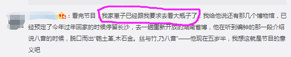 有網友表示:看完節目,小朋友點名要去看大瓶!