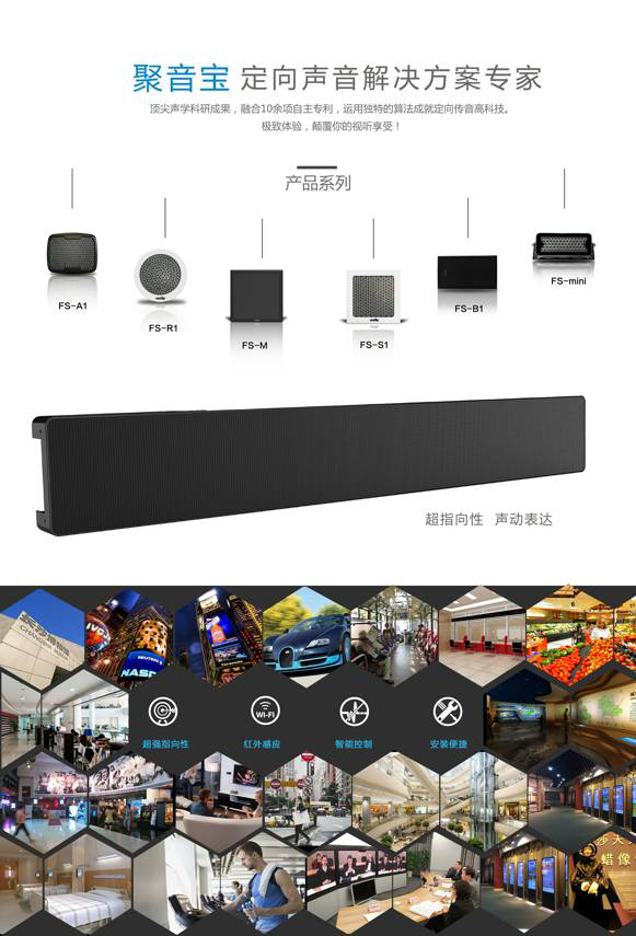 聚音寶從根源上控制了噪音的產(chǎn)生,緩解了當(dāng)下日趨嚴(yán)重的聲污染問(wèn)題。聚音寶以其頂尖的聲學(xué)技術(shù)填補(bǔ)了國(guó)內(nèi)在聲學(xué)環(huán)保領(lǐng)域的空白,獲得了十余項(xiàng)自主專利,并應(yīng)用于20多個(gè)行業(yè)領(lǐng)域,成為了國(guó)內(nèi)首個(gè)首個(gè)實(shí)現(xiàn)商業(yè)化的定向音箱。