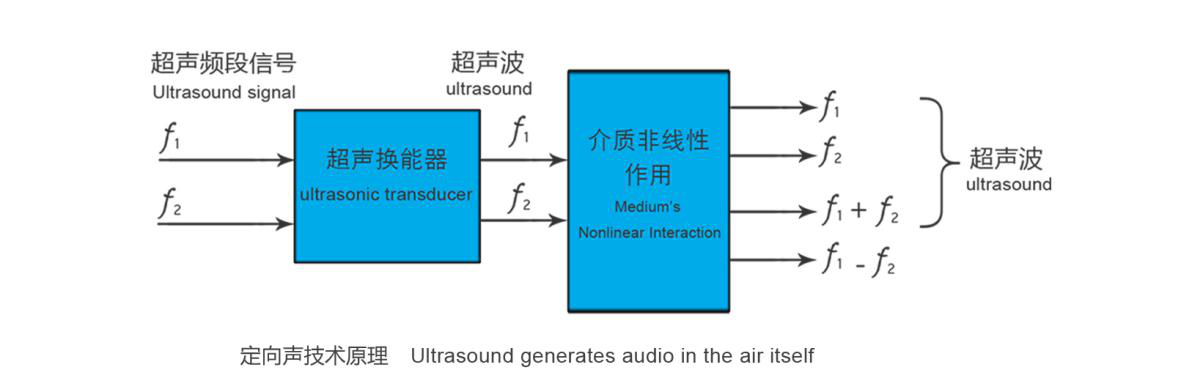 定向音箱是融合了定向聲技術(shù)的聲學(xué)創(chuàng)新應(yīng)用產(chǎn)物。基于定向聲技術(shù)原理,將低頻聲音信號(hào)搭載于指向性很強(qiáng)的高頻信號(hào)上,經(jīng)過放大投射到空氣中,根據(jù)聲音在空氣中的傳播特性,高頻信號(hào)會(huì)被迅速過濾掉,而高頻信號(hào)上的可聽聲信號(hào)會(huì)自然濾出,實(shí)現(xiàn)聲音的定向傳播。與此同時(shí),定向聲技術(shù)會(huì)把聲波控制在特定區(qū)域內(nèi)傳播,在這個(gè)區(qū)域內(nèi)的聲波很強(qiáng),而在這個(gè)區(qū)域外的聲波會(huì)逐漸減弱,甚至不易被人耳識(shí)別。