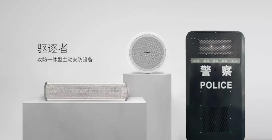 目前,驅(qū)逐者分音箱和盾牌兩種形態(tài);音箱形態(tài)的驅(qū)逐者又分EV-L1和EV-R1兩種型號(hào),適配掛壁和吸頂安裝,場景契合度極高;由于外觀似音箱,具有一定的隱蔽性。而盾牌則融合了一系列聲光信號(hào)技術(shù),更適用于軍用警戒攻防。
