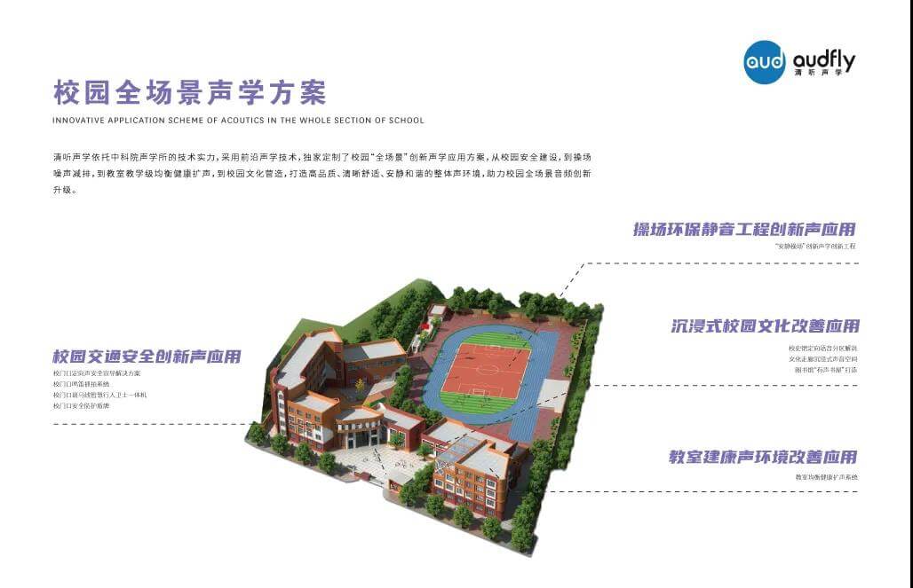作為教育行業的新生,清聽聲學此次誠意拳拳。依托和中科院聲學所的產學實力,清聽聲學采用前沿聲學技術,獨家定制了校園“全場景”創新聲學應用方案,從校園安全建設,到操場定向廣播系統不擾民,到教室教學級均衡健康擴聲系統,到校園文化營造,打造高品質、清晰舒適、安靜和諧的整體聲環境,助力校園全場景音頻創新升級,優化校園聲環境。
