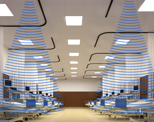指向性揚聲器可以用在醫院運動康復區,如下圖: