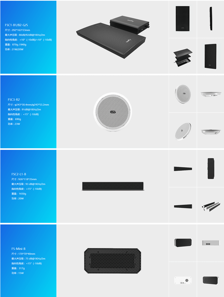 目前清聽聲學定向音箱產品型號也是行業內最多的,所以安裝方式也是最多的,能夠滿足客戶多種場景需求,吊頂、吸頂、壁掛、支架、放置、集成到產品里面等都可以,清聽聲學還給客戶提供免費的解決方案,一站式服務讓客戶更省心省力。